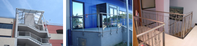 RINGHIERE DI BORDATURA lavorate a semplice disegno e ferro battuto, rettilinee, inclinate e curve, in ferro normale, zincato a caldo, in acciaio inox.Ringhiere in acciaio inox e vetri di alta rifinitura